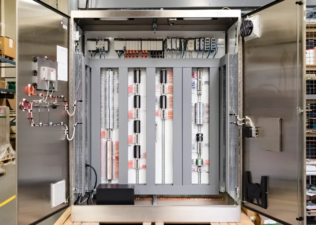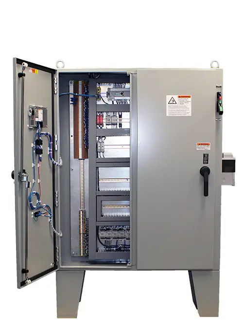 A PLC panel, or Programmable Logic Controller panel, is an industrial control panel that houses a PLC (a specialized computer for automation) and other essential electrical components used to control and monitor industrial processes. It acts as the “brain” of an automated system, receiving inputs from sensors, processing data based on programmed instructions, and controlling output devices like motors or relays.